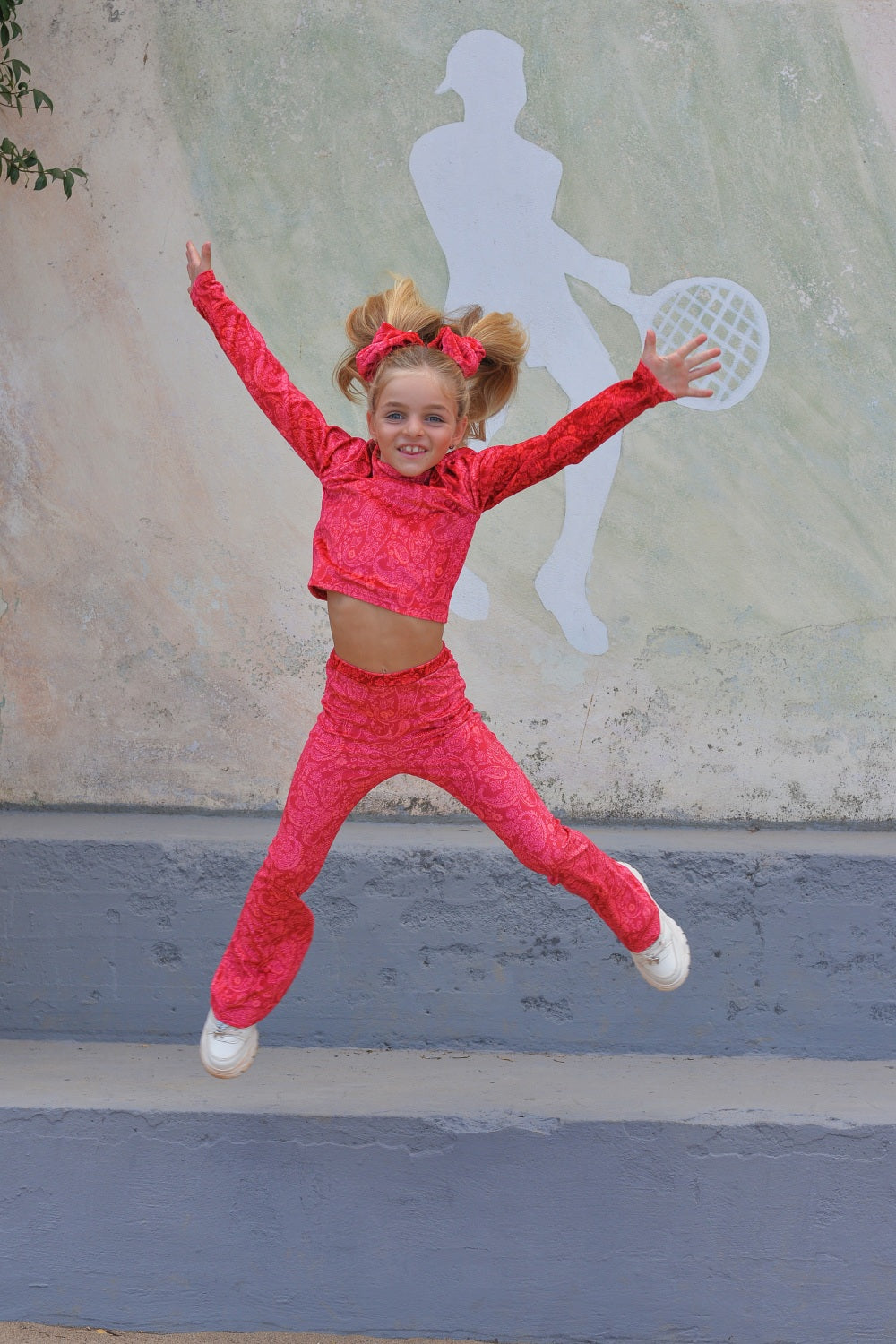 Magenta Paisley flare pants σε μαλακό βελούδινο ύφασμα.