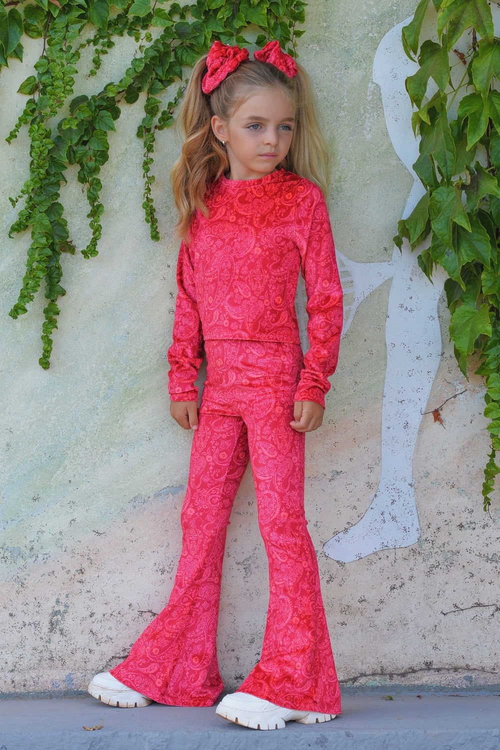 Magenta Paisley crop top σε μαλακό βελούδινο ύφασμα.